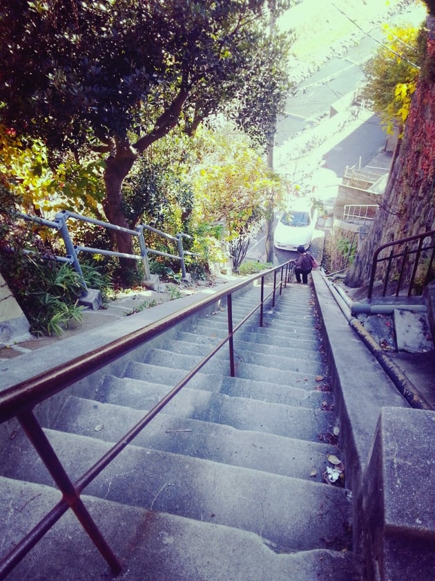 途中、神戸の地獄段を登ります。(勝手に命名)