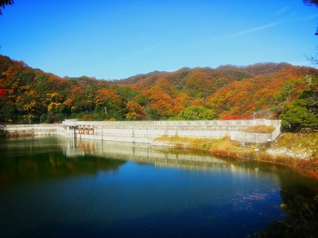 貯水池は見事な紅葉!!