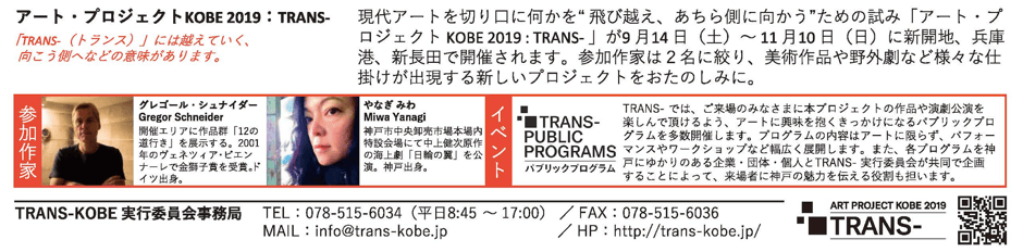 兵庫のまちは古くから港町として知られ、近代に入ると造船所や製鋼所がつくられ工業都市として発展を続けました。兵庫区も戦争や震災で大きな被害を受けましたが、奇跡的に多くの遺産が残されています。今回のツアーではアートを通じて兵庫区に残された遺産を越えて(TRANS)、先人の記憶に触れる旅になればと考えています。