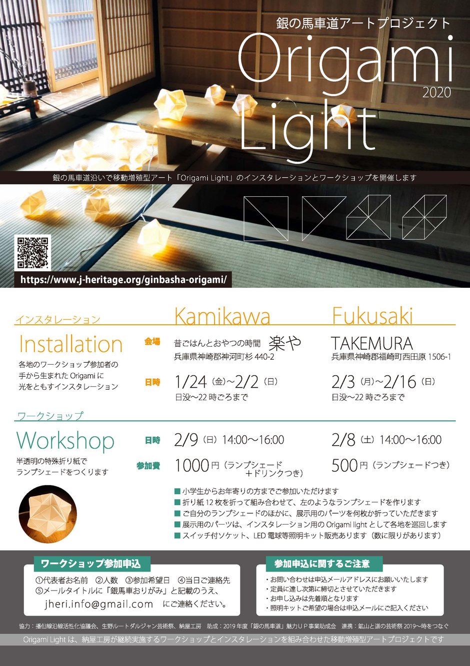 Origami Lightは、納屋工房が継続実施するワークショップとインスタレーションを組み合わせた移動増殖型アートプロジェクトです。くわしくはこちら